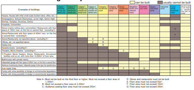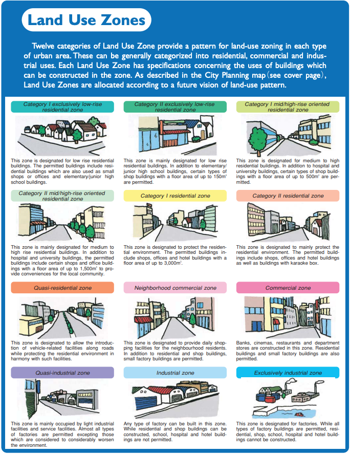 To be sure, there is more to Japanese zoning than the 12 zones depicted. But this simple system provides the basis for limited elaboration.