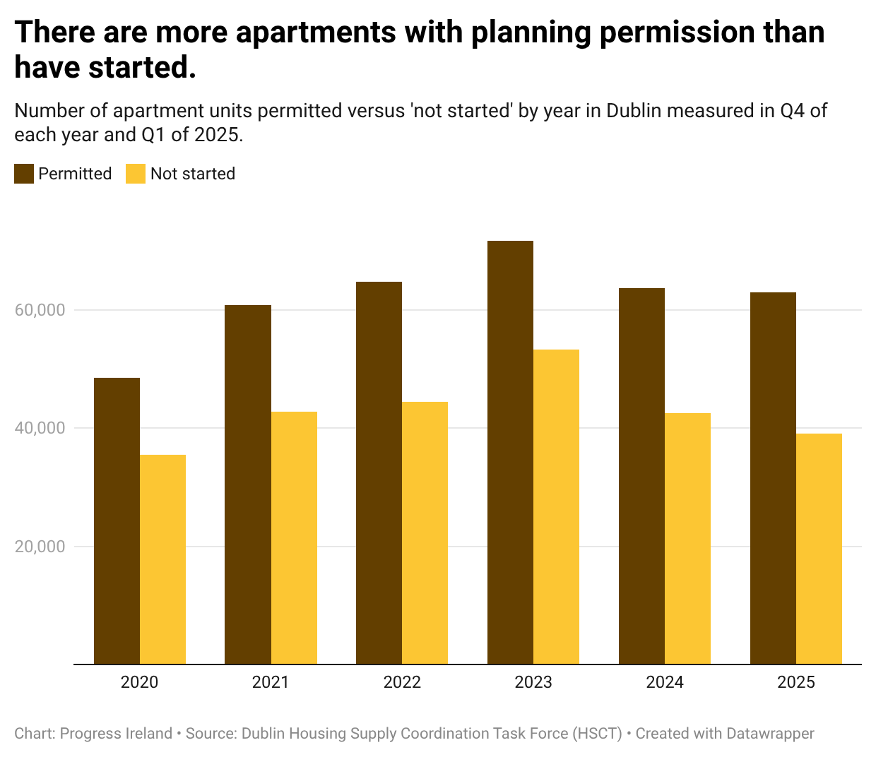 There are a lot of sites with “unactivated” permissions for apartments, especially in Dublin. The figure in Dublin has been hovering around 40 to 50,000 “unactivated” units for the last five or so years.